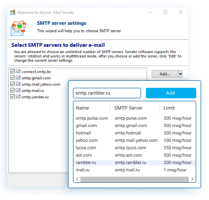 • Unlimited number of 3rd-party SMTP server.